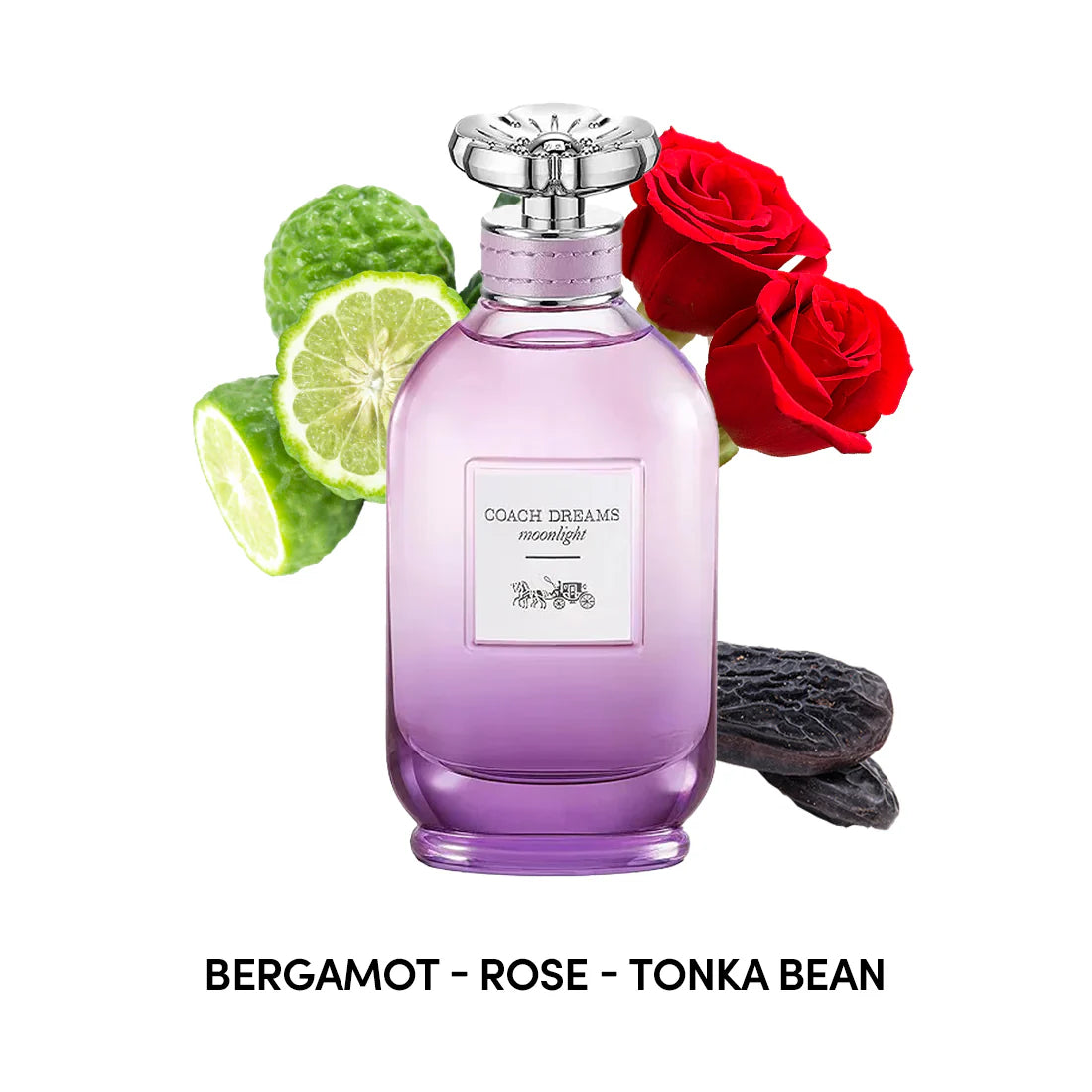 Coach Dreams Moonlight opens with the refreshing top notes of bergamot, an invigorating citrus that immediately uplifts your senses. As the fragrance evolves, the heart notes of rose and jasmine emerge, infusing the perfume with a timeless floral bouquet that exudes sophistication and grace.
