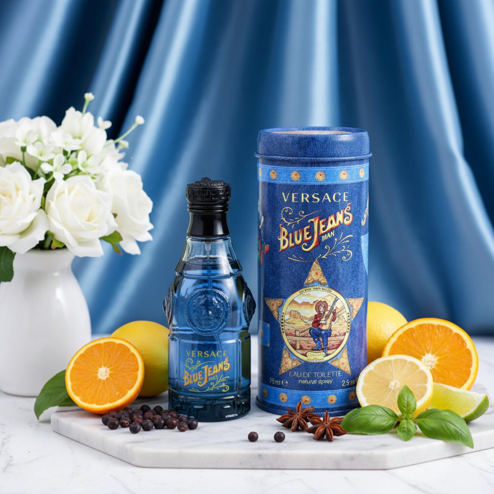 Experience the exceptional blend of woodsy and citrus notes with Versus Blue Jeans by Versace, crafted for the modern man. Conceived by the renowned design house of Gianni Versace in 1994, this sharp, oriental, woody fragrance is a testament to timeless elegance and sophistication.